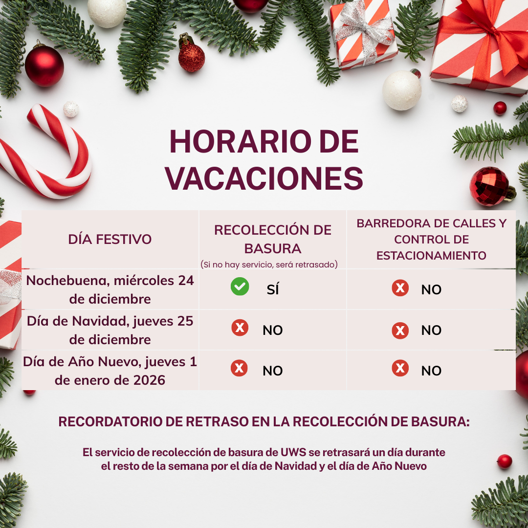 Street sweeping parking restrictions will not be enforced on December 24, December 25, and January 1.
