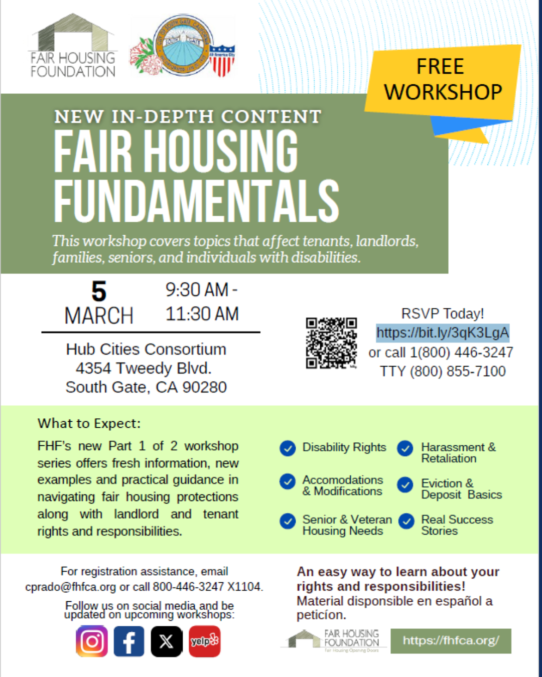This workshop provides detailed, practical information on fair housing rights and responsibilities, helping participants better understand how housing laws apply in real-life situations.